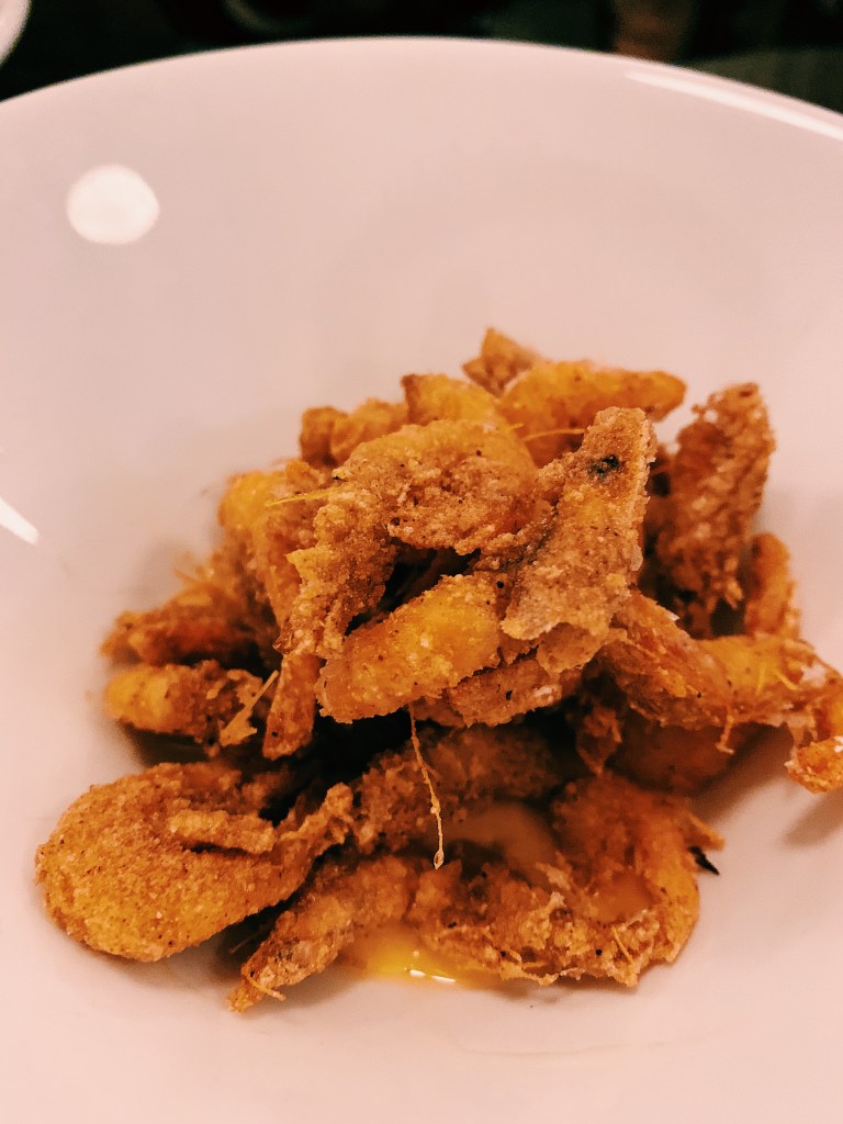 After the refined flavours of Vex, we were craving a deep-fried something and found that in the form of school prawns with crustacean aioli ($16).