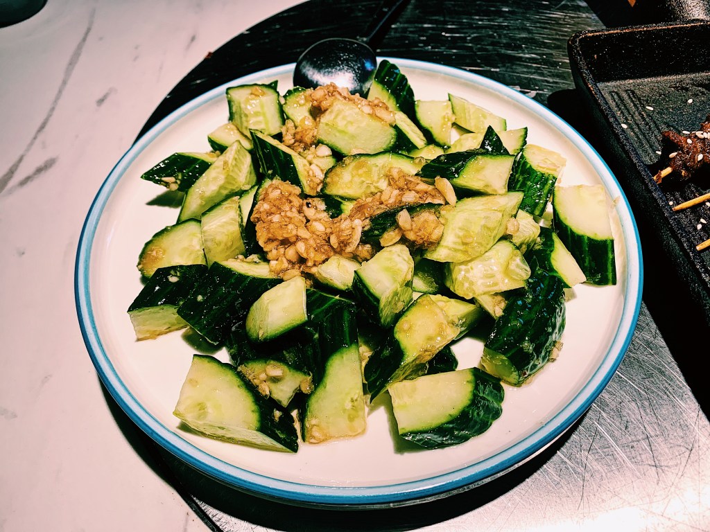 Known as pai huang gua, this vegetable dish is served across China as a cooling antidote to what us Asians call ‘heaty’ food. The cucumbers are smashed and mixed in with plenty of garlic and drizzles of soy sauce, Chinkiang vinegar, sugar and sesame oil. As detailed in this New York Times recipe: