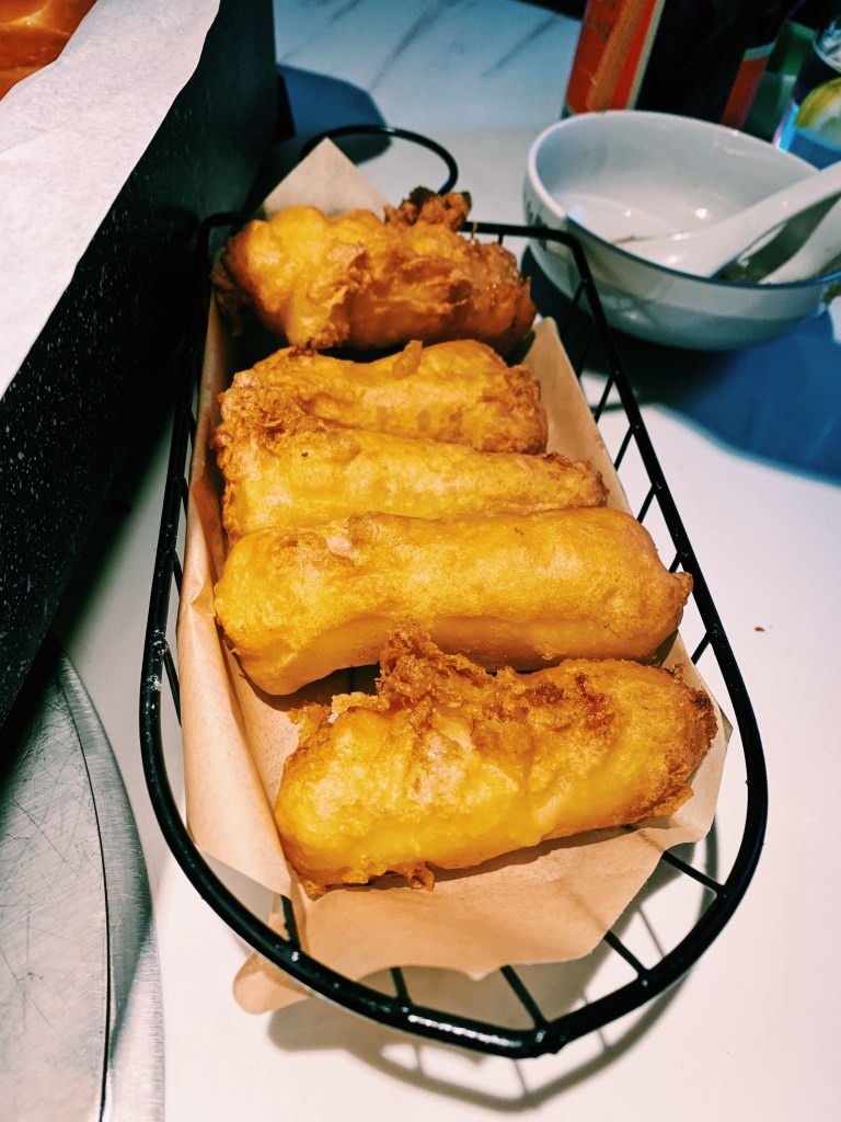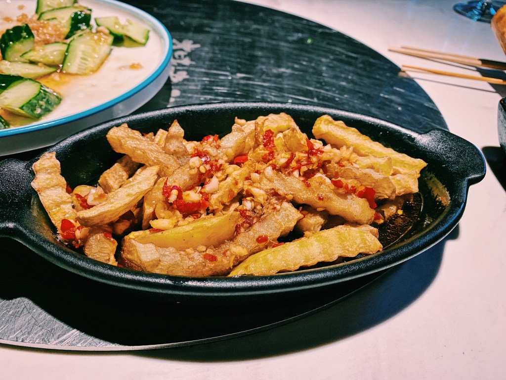 Unlike julienned strings of potato, this dish had crinkle-cut potatoes doused in a fiery, garlicky chilli blend with notes of Sichuan peppercorns. I’ve been known to not be a fan of Sichuan peppercorns, but their numbing properties were understated enough in this dish for me to enjoy them. The crinkle-cut potatoes were delicious while being simultaneously too spicy for anyone to eat more than a few chips at a time.