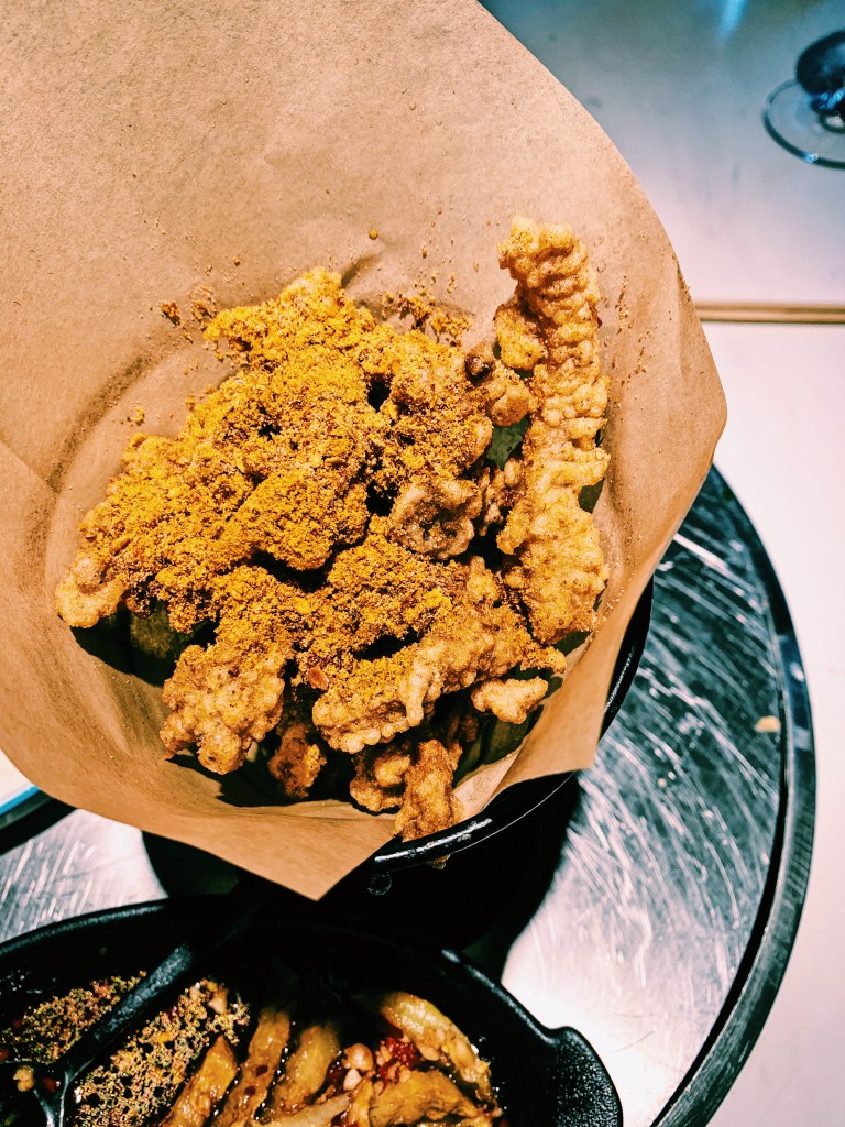 Because we couldn’t get enough of pork belly, we also ordered David’s deep-fried pork belly ($15) where deep-fried, egg-battered pieces of pork belly arrived in a paper cone. They reminded me of those packets of pork scratchings you can buy from the supermarket, but these were so much more flavour-filled. The double-fried sweet potato starch batter had the numbing spiciness of Sichuan peppercorns in it, dusted off with a dry spice seasoning consisting of, you guessed it, more Sichuan peppercorns and five-spice powder. These were incredibly moreish and would make a perfect drinking snack. And just like with the crinkle cut potatoes, I really enjoyed them despite being able to faintly taste the Sichuan peppercorns.