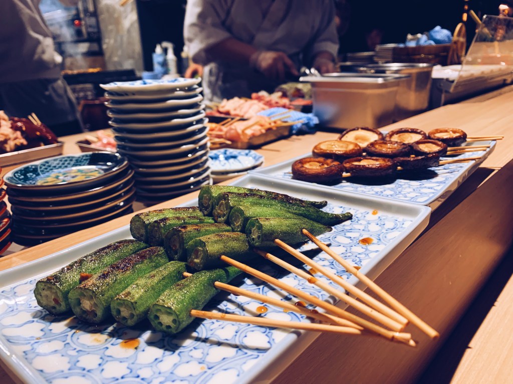 We had collectively decided we were at Yakikami for one thing and one thing alone – the skewers, whether they were from the vegetable, binchō-tan (prized cuts of chicken) or nomad (named after Nomad Farms in South Australia) section. We opted to steer clear of the sushi, sashimi and pricy wagyu steak (even though this is literally why Yakikami is famous) section, and though I’d heard amazing things about Yakikami’s chicken ramen with its 18-hour steeped broth, we thought it’d be too hard to share among the three of us.