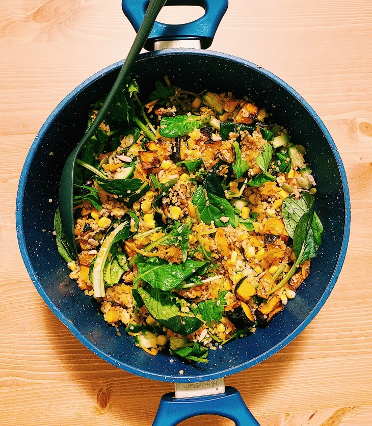 When she first made it for us, I couldn’t help going for seconds and thirds – the roasted pumpkin skin was the highlight for me (I love roasting pumpkins and potatoes with their skin retained), as was the wonderfully tangy yet light dressing she concocted out of olive oil, lemon juice, balsamic vinegar and seeded mustard.