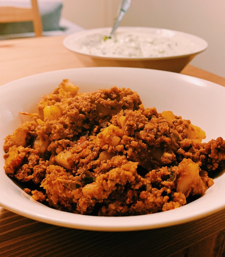 Keema is a South Asian dish with a specificity that exists in very opposition to the generic moniker “curry” – it’s a traditionally Mughal dish which features minced meat cooked with potatoes or peas or both in a heady aromatic concoction of star anise, cloves, cinnamon, curry powder and chilli powder.