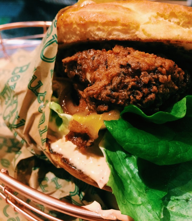 It’s a laidback vibe at Benny Burger. You get paper menus from the front counter and happily settle into pinball machine tables-cum-booths set against graffiti-splattered walls or two-seater tables if you’re not lucky enough to nab a booth.